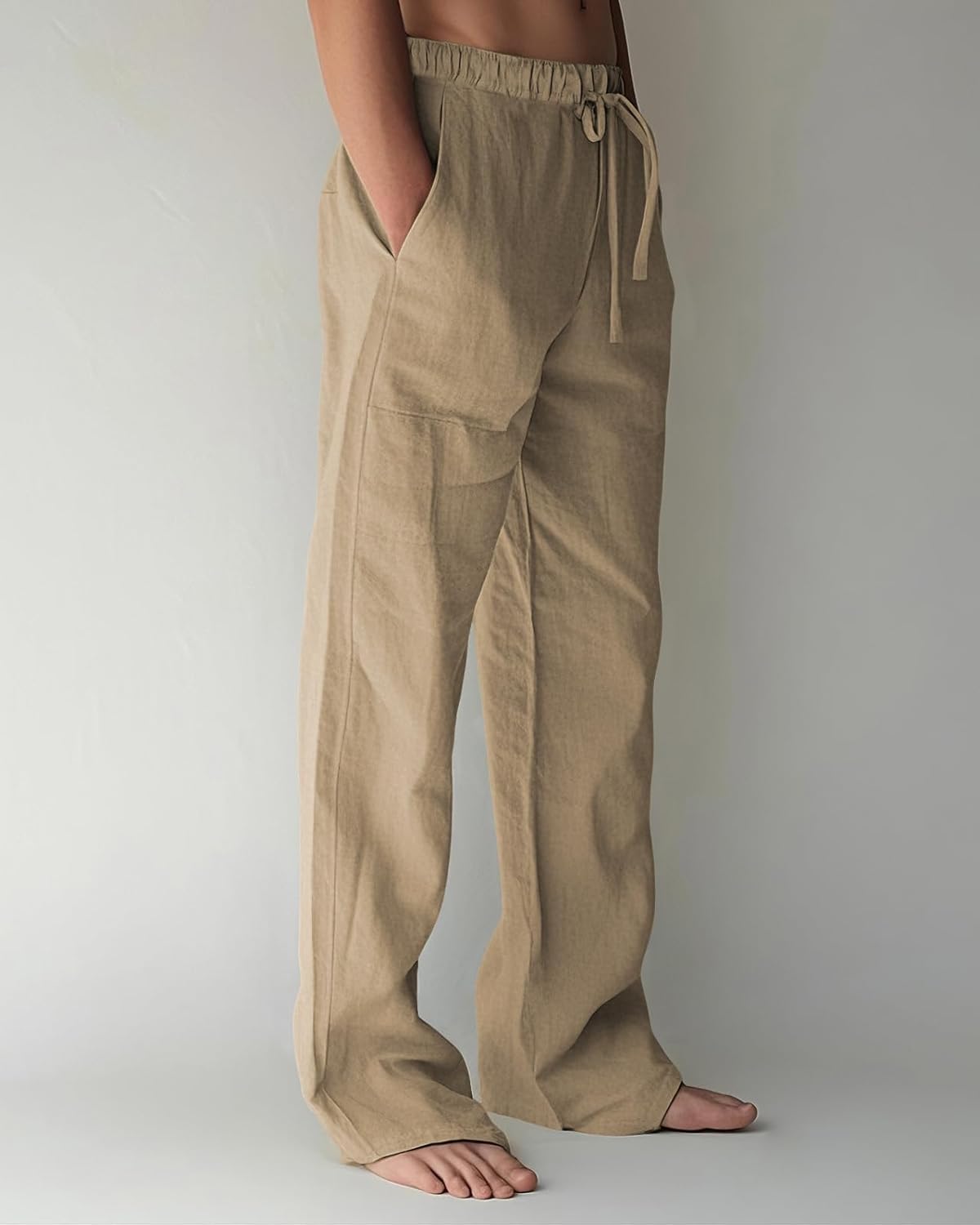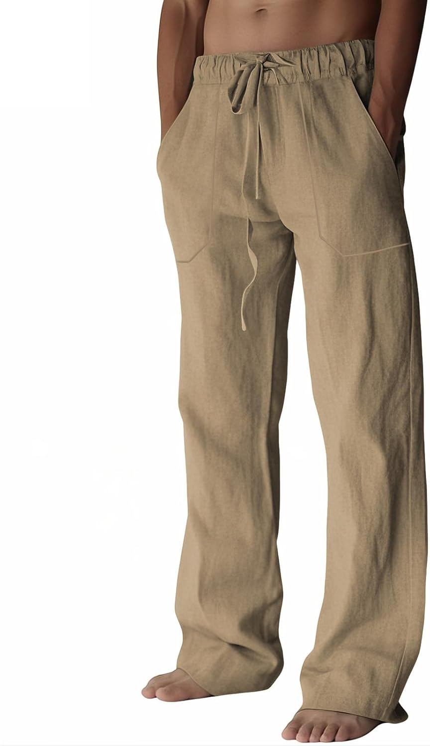 - Simple style — Mens elastic waist linen Straight-leg Trousers,double-sided slant pockets,loose fit, make you look great for your leisure time. Embrace freedom of movement and all-day comfort with our summer beach trousers