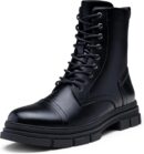 - Sleek Urban Appeal: The lace-up design not only secures your fit but also accentuates the boot’s sleek silhouette, making it a versatile addition that complements both streetwear and more polished looks.