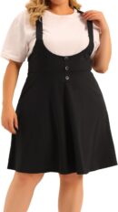 - This solid colored suspender skirt features a regular cut, A-line design with a slightly pleated hem