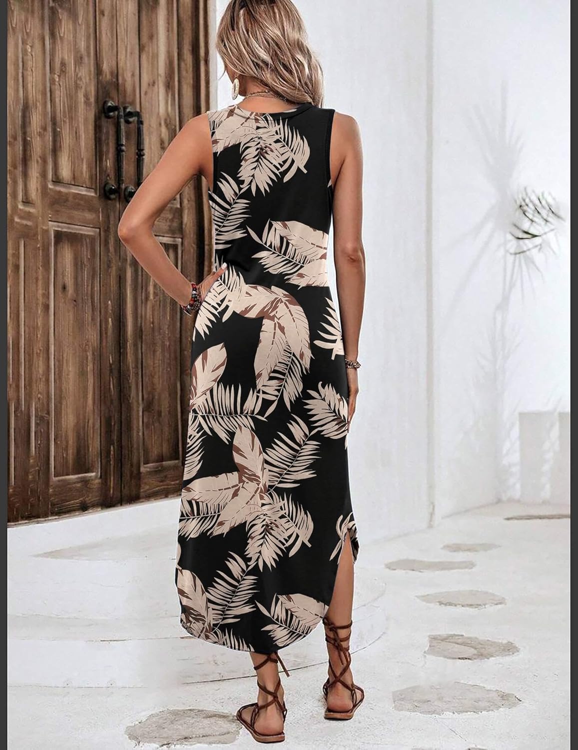 • 【Features】Women summer dresses features in crewneck, sleevess,side split maxi derss, curve hem, calf length, loose midi dress,summer beach dresses with two sides pockets, soft and stretchy long dress for women.