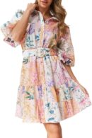 • Features: Lantern short-sleeved belted lapel print holiday dress adds stylish design, fresh and elegant, and makes you look different