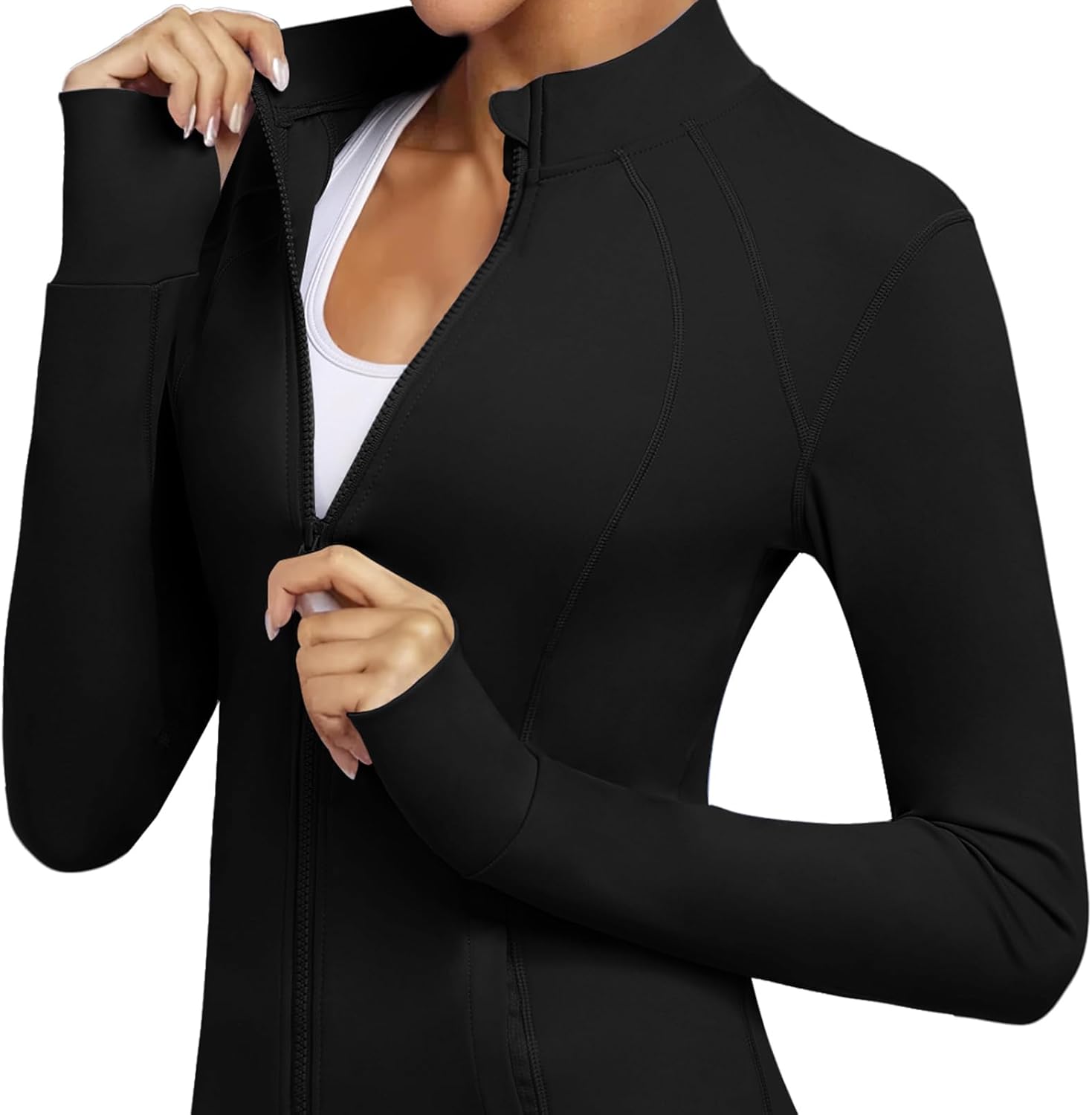- Convenient Zipper&Pockets: The yoga jacket’s zipper easily control the temperature during your workout.Put on and take off easily. It has a flap at the top to prevent the zipper from unlocking and slipping off, and it won’t hurt your skin either. Zipper pocket on each side of this sport jacket can effectively prevent your items from slipping during exercise. Thumb holes fit naturally into your hands, keeping sleeves in place and warm.